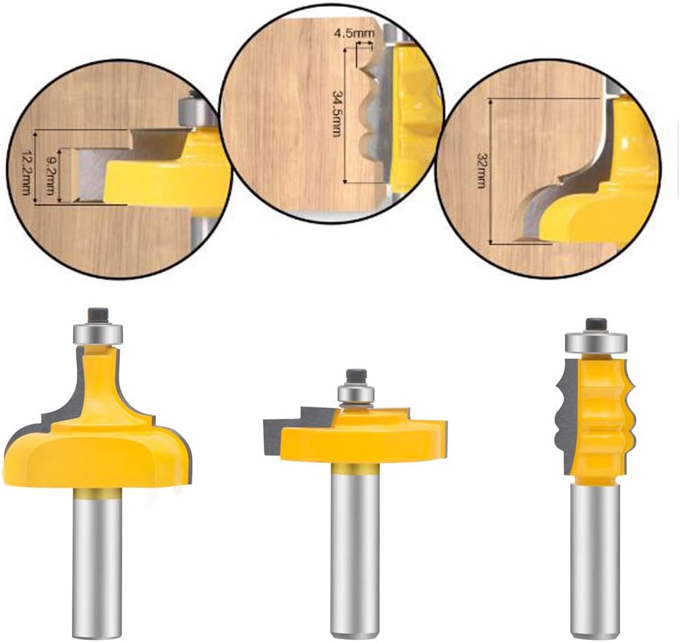 Customer reviews LEATBUY 3 PCS Router Bit Set, 1/2-Inch Shank Complete Picture Frame Making Bit Set Router Bits, Woodworking Wood Molding Cutter, Door, Drawer Front Edging Router Bit Sets(1/2-classic)